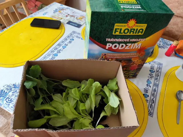 U domu | První poslové jara. Ve Šnakově jsme koupili pár sazeniček salátu a kedluben. |