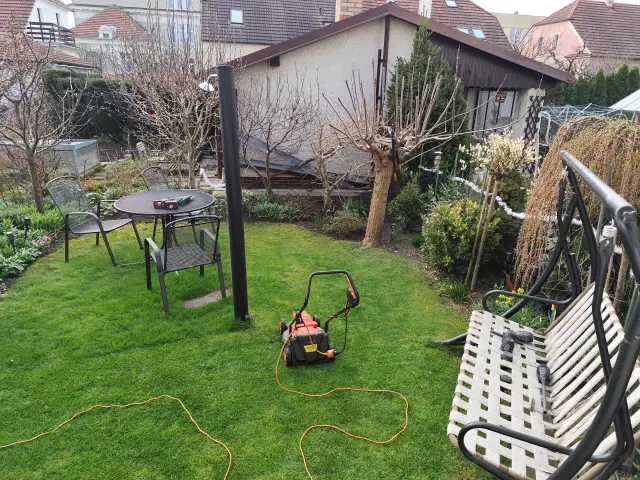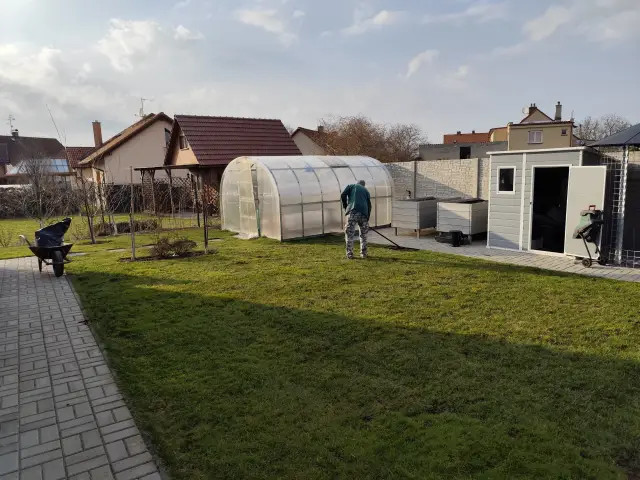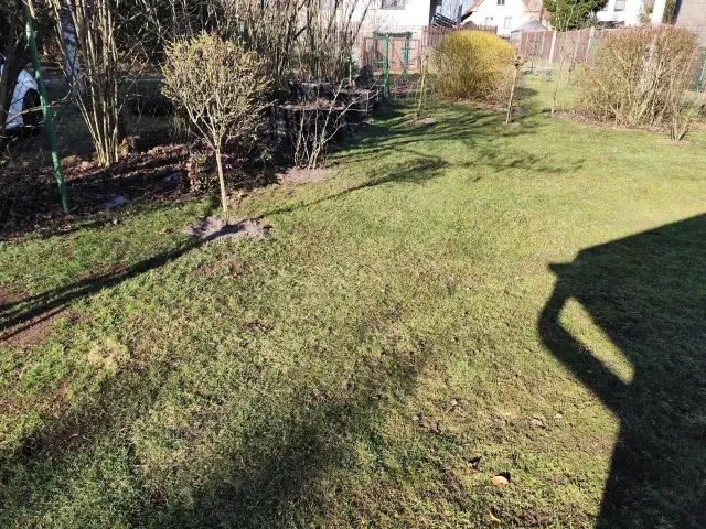 Slatina | Včera jsme zasadili mandloň. Už poslední stromek. V pátek jsme pročesali trávník a pohnojil podzimním hnojivem. |