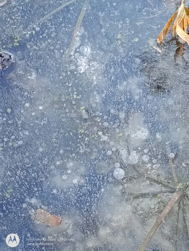 Jezírko Naděje | Foto: Bubliny plynů vznikající rozkladnými procesy zůstávají uvězněné pod ledem. |