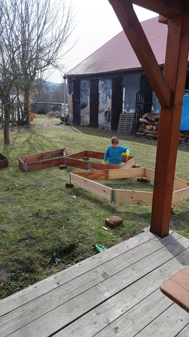 Miniskalka s pidijezírkem | jsem názoru že nejlepší dárek si koupí člověk sám, takže k narozeninám už dlouho nedostávám žádné pugety ani voňavky ani podobné dárkové nesmysly. Místo toho jsem si sehnala na bazoši 18 krásných dřevěných ohrádek jako dělaných na zvýšené záhony. Přítel mi je přivezl, starší syn spojil dva rámy na jeden velký a s mladším jsme je natřeli. Zbývá ještě zítra druhá vrstva barvy, pak vyložit fólií, přidělat na dno pletivo proti krtkům, kompost , hlína a může se pěstovat |